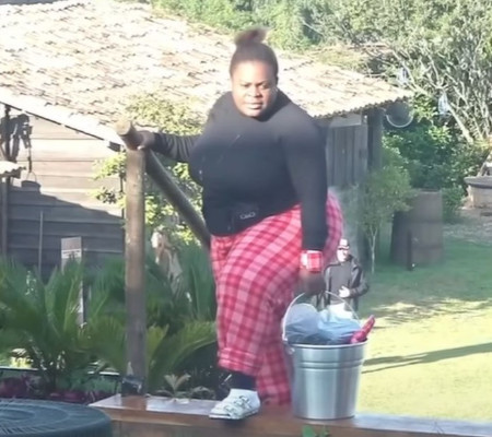 Jojo reclamou sozinha enquanto subia as escadas após ter que deixar a baia para iniciar o trato dos animais. "A baia é horrível! Quem fala que gosta da baia merece tomar uma coça. Ô, lugar ruim!", resmungou a confinada.