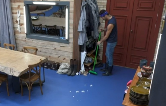 Será que ele vai descobrir? Bil e Rico são os únicos peões acordados na sede. O humorista aproveita que não tem ninguém na cozinha e faz uma faxina no cômodo. Sem saber, ele varre as espumas do próprio casaco.