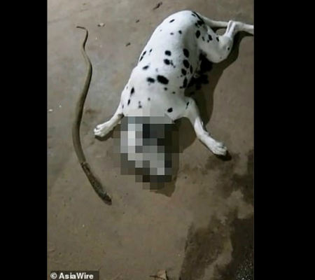 Este é o momento horrível em que um dálmata heróico morreu de uma picada de cobra depois de proteger sua família de uma cobra altamente venenosa.