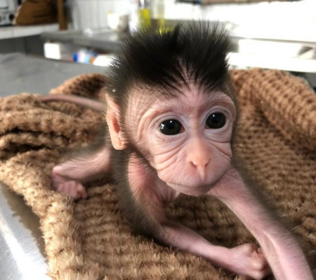 Um filhote de macaco-caranguejeiro após ser rejeitado pela própria família no zoológico de Balneário Camboriú, no Litoral Norte catarinense, está sob os cuidados de uma veterinária na sua casa.