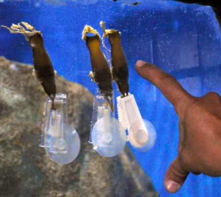 "Vamos começar dando pedacinhos pequenos de peixe, camarão. Temos que ver o que eles vão aceitar e vamos tentando diversificar as opções para ver a adaptação. Quando os filhotes já estiverem se alimentando normalmente, via oral, poderão ficar no tanque junto com os pais", finaliza.