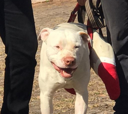 O cão da raça pitbull Sansão, de 2 anos, que comoveu o país após ter tido as duas patas traseiras decepadas por uma foice, ganhará uma cadeira de rodas na tarde desta quinta-feira (9) em Belo Horizonte, de uma doadora volutária, que preferiu não se identificar. De acordo com reportagem do portal G1 o animal foi torturado em Confins, na Grande BH, quando vizinhos à empresa onde o cão ficava utilizaram uma foice para decepar as patas do animal. O caso aconteceu na última segunda-feira (6).