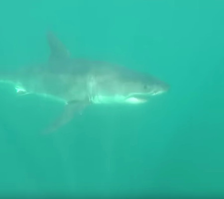 "Um amigo e eu estávamos remando quando de repente um grande tubarão-branco de quatro metros começou a nos seguir, ele então cercou os caiaques por alguns minutos e depois foi embora", disse a pessoa que filmou ao Newsflare.