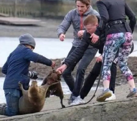 As pessoas que assistiam às palhaçadas da foca foram os responsáveis por acionar o Corpo de Bombeiros de Londres e o Resgate da Vida Marinha Britânico para resgatá-la após o ataque sofrido no domingo. A corporação levou a foca para um hospital veterinário.