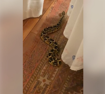 De acordo com o Herald Live, Camila Stucken foi quem encontrou o animal na sala da casa e primeiro o filmou para depois acordar seu marido para ajudá-la a achar uma forma de conter o animal.