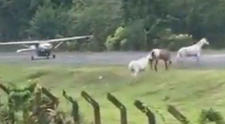 Cavalos invadem pista de pouso e quase colidem com avião; vídeo