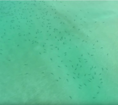 Um drone registrou a imensa quantidade de tubarões que disfrutavam do sol na praia de Great Barrier Island, a 90 quilômetros de Auckland, capital da Nova Zelândia. As informações são do Sputnik.