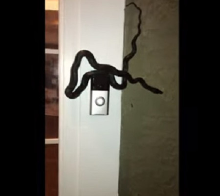 Uma casa nos Estados Unidos registrou uma cena assustadora: uma visitante bem na porta, uma cobra, de mais de um metro. Ela surgiu na entrada da residência no bairro de Overland Park, acionando o alerta de movimento da campainha.