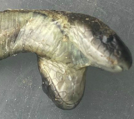 "As cobras foram levadas a um veterinário para uma verificação rápida, apenas para garantir que todas fossem boas para serem libertadas", disse ele. Infelizmente, a criatura com duas cabeças teve que ser abatida pois o veterinario afirmou que ela não sobreviveria.