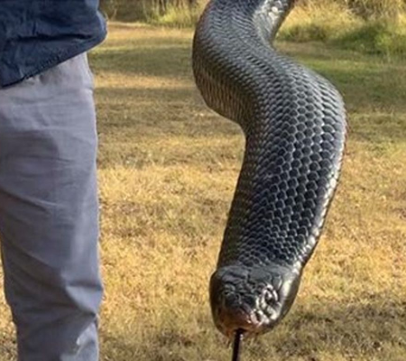 Uma cobra assustadora de quase dois metros de comprimento foi capturada em Brisbane, na Austrália. O réptil venenoso foi encontrado em um campo de tiro próximo de um sistema de riachos, um lugar muito propício para as cobras de sua espécie, a cobra negra de barriga vermelha, já que elas crescem em ambientes úmidos.