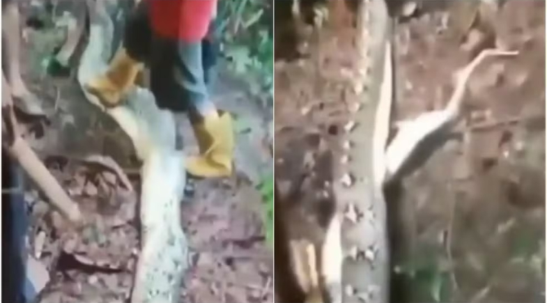 Moradores locais bateram na serpente até matá-la e disseram que havia engolido a mulher até os ombros antes de soltá-la, acrescentou.