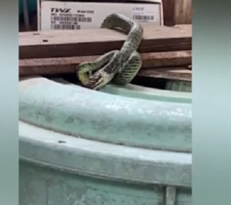 Cobra invade banheiro e devora lagarto vivo na Tailândia; Vídeo