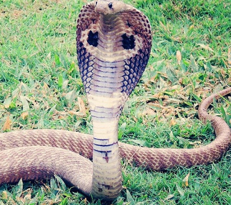 De forma assustadora, uma cobra-rei de quatro metros e meio de comprimento, surgiu em uma vila indiana, chamou atenção dos moradores, que acionaram o departamento florestal da região.