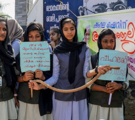 Estudantes protestaram em uma escola indiana na sexta-feira depois que um aluno de 10 anos morreu após mordido por uma cobra venenosa um buraco debaixo de sua mesa na escola da cidade de Kerala, sul da Índia.