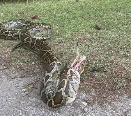 Uma píton da Flórida regurgita um pássaro pernalta inteiro. O caso ocorreu em Janeiro de 2020. No vídeo vemos a cobra, de aproximadamente 3 metros de comprimento, se contorcendo para expelir o animal que estava dentro do seu estômago.