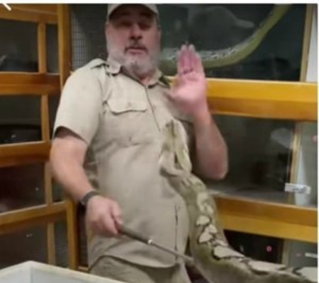 Jay Brewer , cuidador de animais silvestres, compartilhou nas redes sociais um registro impressionate, de uma cobra píton que dá um bote contra ele, tentando atacá-lo. O vídeo foi publicado em novembro e conta com milhões de acessos.