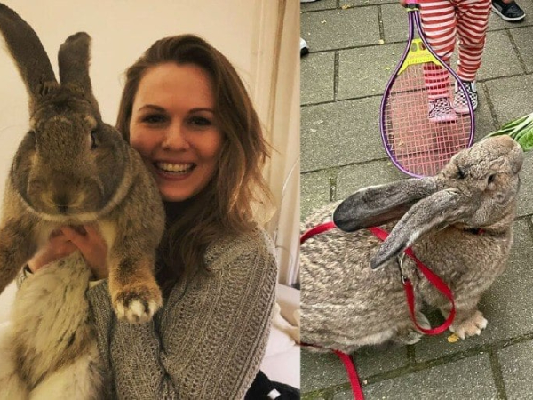Foi o que aconteceu com Danielle, moradora de Amsterdâ, na Holanda, tutora do coelho gigante Guus que, além de seu tamanho, chama a atenção de todos por onde passa por ter uma personalidade bem parecida com a de um cachorro.