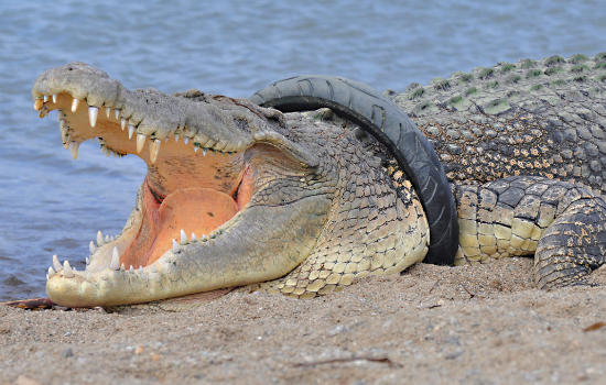 Conservacionistas acreditam que alguém pode ter deliberadamente colocado o pneu ao redor do pescoço do crocodilo em uma tentativa fracassada de prendê-lo como um animal de estimação.