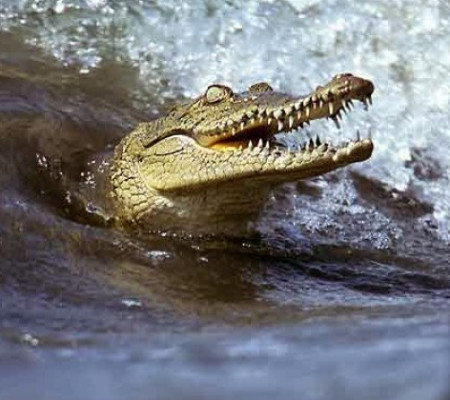A câmera vira no ar enquanto os dentes do crocodilo aparecem na câmera. Mesmo com o ataque feroz, o drone consegue escapar do ataque do crocodilo.