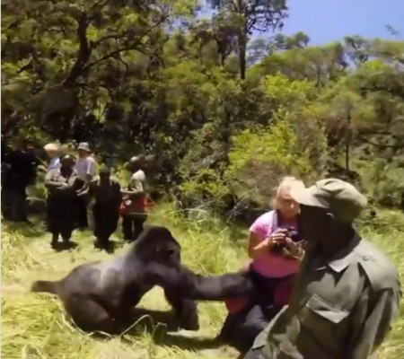 A aproximação do habitat de animais pode trazer riscos e sair do controle. É o caso de uma turista que acabou sendo 'nocauteada' por um gorila em uma floresta tropical da África.