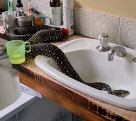 Uma família de Wollongong, na Austrália, levou uma surpresa ao ouvir um barulho no banheiro e se deparar com uma píton de quase dois metros na pia.