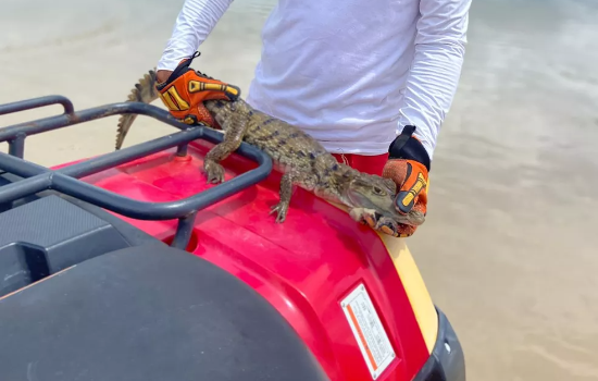 Filhote de Jacaré é flagrado na Praia do Calhau em São Luís - Foto: Divulgação
