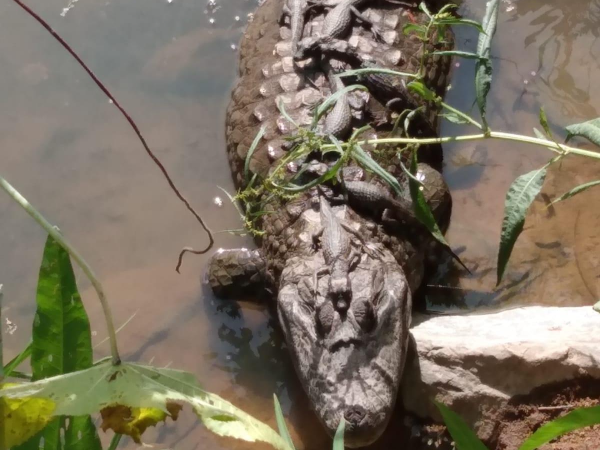 O número de jacarés está crescendo na Lagoa da Pampulha, em Belo Horizonte. Um animal foi flagrado com pelo menos dez filhotes. A foto, de autoria do fotógrafo da Prefeitura de Belo Horizonte, Antônio Rodrigues, mostra a "família" curtindo um sol às margens do lago, em frente à portaria principal do Zoológico da capital mineira, no bairro Bandeirantes.