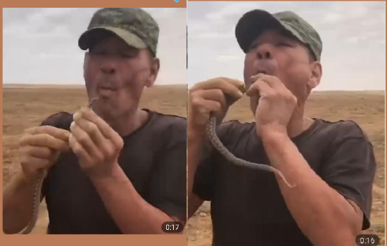 Um vídeo (link a seguir), foi gravado durante uma colheita na região de na região de Astrakhan, no sul da Rússia, perto da fronteira com o Cazaquistão. Ao tentar impressionar outros trabalhadores, o homem colocou o réptil pela cabeça na boca.