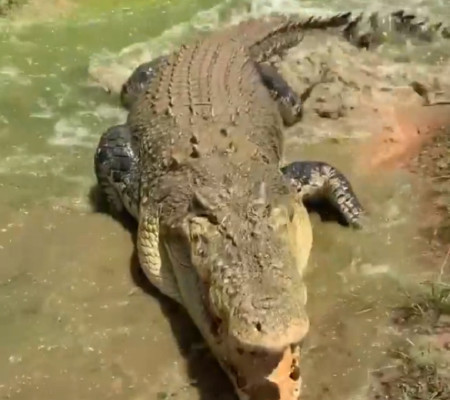 Um aventureiro Matt Wright registrou o momento impressionante no qual um crocodilo é alimentado em uma zona de safari na Austrália.