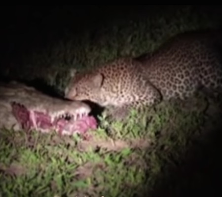 A cineasta ficou observando os animais por horas até captar o momento. No vídeo, é possível ver o leopardo se aproximando e tentando roubar um pedaço de carne que está na boca do réptil, que parece estar dormindo. Depois de conseguir algumas mordidas, o crocodilo se levanta e deixa o local.