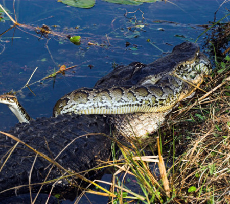Pítons birmaneses são espécies invasoras que estão dominando o habitat. Tanto que o Conselho de Administração do Distrito de Gerenciamento de Água do sul da Flórida estabeleceu o Programa de Eliminação de Píton em 2017 para limitar o dano que as cobras estrangeiras poderiam causar a outras espécies.