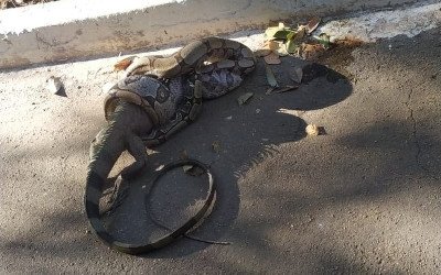 Nas imagens compartilhadas em redes sociais, os visitantes do local se surpreenderam com o réptil enrolado ao corpo da iguana. O animal possuía cerca de 1,5 metro de comprimento e tem uma digestão lenta.