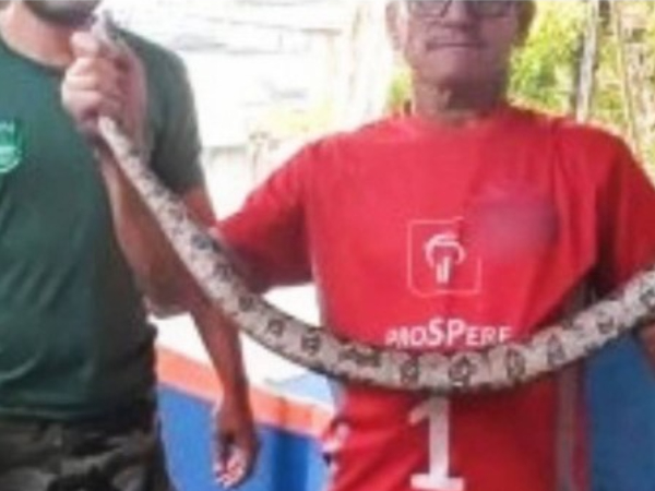 Uma jiboia foi capturada por um morador, em Nova Iguaçu, Rio de Janeiro. O caso aconteceu no último sábado (10). Uma vizinha do homem localizou o animal no quarto de sua casa. Depois de capturá-la, ele decidiu levá-la para a Defesa Civil.