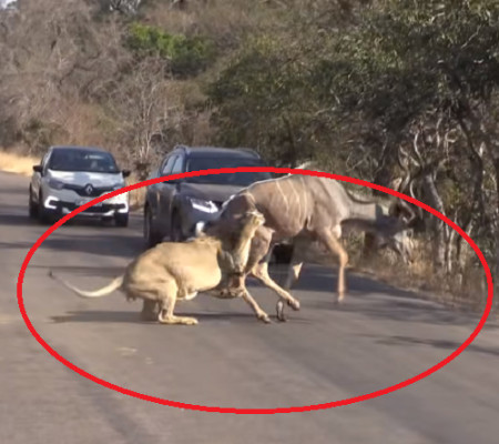 Um grande leão partiu para cima de um antílope. O vídeo impactante mostra que o rei da selva engata um golpe certeiro no outro animal. As cenas foram registradas pelo canal Kruger Sightings.
