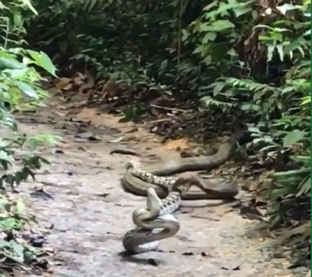 As cobras foram visto no Parque MacRitchie Reservoir, em Cingapura por Sheldon Trollope. Aqui as emoções foram menores.