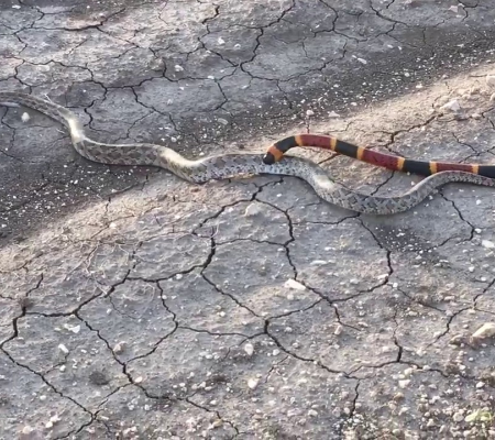 Uma luta entre cobra coral e cobra rei foi gravado por trabalhadores em um campo agrícola, no sul do Texas, enquanto eles trabalhavam em um parque de turbinas eólicas.