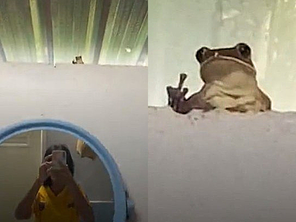 "Eu estava arrumando meu cabelo [no espelho do banheiro] quando vi o sapo lá. Ele não piscou. Apenas olhou para mim", disse a jovem à agência de conteúdo Newsflare.