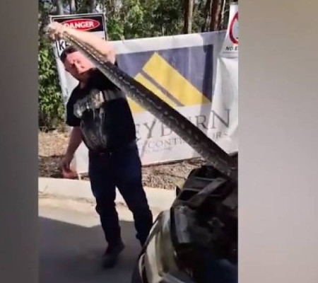 De acordo com o 9 News, ele se surpreendeu ao resgatar uma enorme píton que estava no motor do carro de uma família. O réptil chegou até lá rastejando pela roda do veículo.