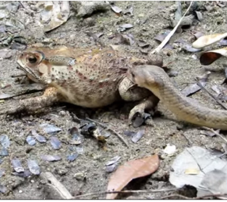 Nos vários ataques observados por cientistas, os sapos tentam de todas as formas escapar das longas eviscerações. Em um dos registros, uma rã-touro (um animal especialmente forte) é flagrada sofrendo.