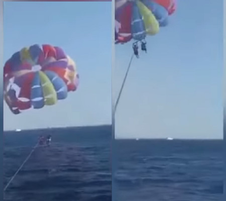 Dois paraquedistas cairam, após voo, no mar Vermelho e foram surpreendidos por um ataque de tubarão.