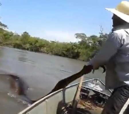 Um vídeo postado no perfil no Instagram @wildlife85official vem causando revolta em quem assiste. Nas imagens, é registrado o comportamento imprudente e irresponsável de um pescador tentando segurar uma cobra sucuri pela calda.