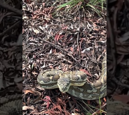 Uma píton nada amigável, de uns três metros de comprimento e 12 quilos, foi avistada na região de Brisbane, na Austrália.