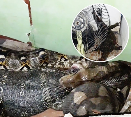 Um verdadeiro milagre aconteceu na Tailândia, depois que uma píton faminta resolveu devorar um lagarto. Uma mulher encontrou o réptil de barriga cheia em sua casa após engolir um lagarto-monitor. Entretanto ninguém sabia o motivo de a píton estar tão "inchada" até que ela resolveu regurgitar sua presa dentro da residência.