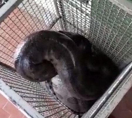 Policiais do Batalhão Ambiental da PM do Mato Grosso foram acionados à área urbana de Várzea Grande, na Região Metropolitana de Cuiabá, para resgatar uma cobra sucuri de quatro metros que tinha acabado de engolir um cachorro no domingo (29).