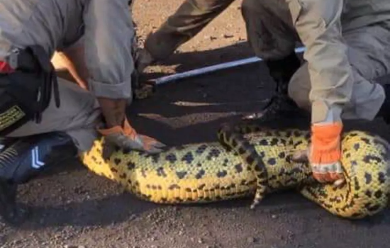 Uma sucuri, com cerca de 4 metros, foi capturada pelo Corpo de Bombeiros, na área de uma empresa siderúrgica, em Corumbá, na região do Pantanal sul-mato-grossense, após devorar um cachorro que estava no local. O caso aconteceu no sábado (30).
