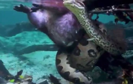 Hudson relatou saiu para um passeio pelas águas cristalinas de Bonito e oo chegar no local se deparou com a cobra,aproximadamente 6 metros de comprimento, se alimentando do mamífero.