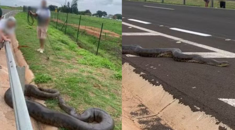 Preocupados com a segurança dos motoristas e do animal, alguns moradores usaram uma corda para puxar a cobra para fora da estrada, evitando que fosse atropelada. Em seguida, o Corpo de Bombeiros foi acionado para realizar o resgate.