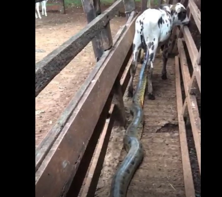 Um vídeo que se tornou viral mostra uma sucuri gigante atacando um bezerro em uma provável fazenda do Mato Grosso. O vídeo, feita supostamente nessa quarta-feira (22), mostra o bezerro em um curral e tem a cobra grudada em uma de suas patas. O bezerro se debate e corre na tentativa de se livrar da enorme sucuri.