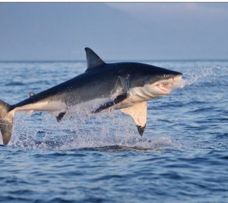 Calypso Star Charters, uma companhia australiana especialisada em mergulhos em jaulas de apreciação da vida marinha, conseguiu filmar na segunda-feira (1º) vários momentos em que um tubarão rompe a superfície aquática dando saltos formidáveis para fora d'água.
