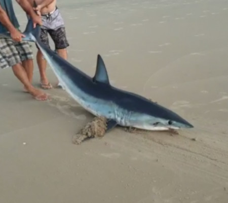 Na manhã desta quarta-feira (19), um tubarão foi encontrado encalhado na praia de Guaratuba, no litoral do Paraná. De acordo com informações de testemunhas, o animal foi visto na praia ainda vivo por volta das 6h. As informações são do Ric Mais.
